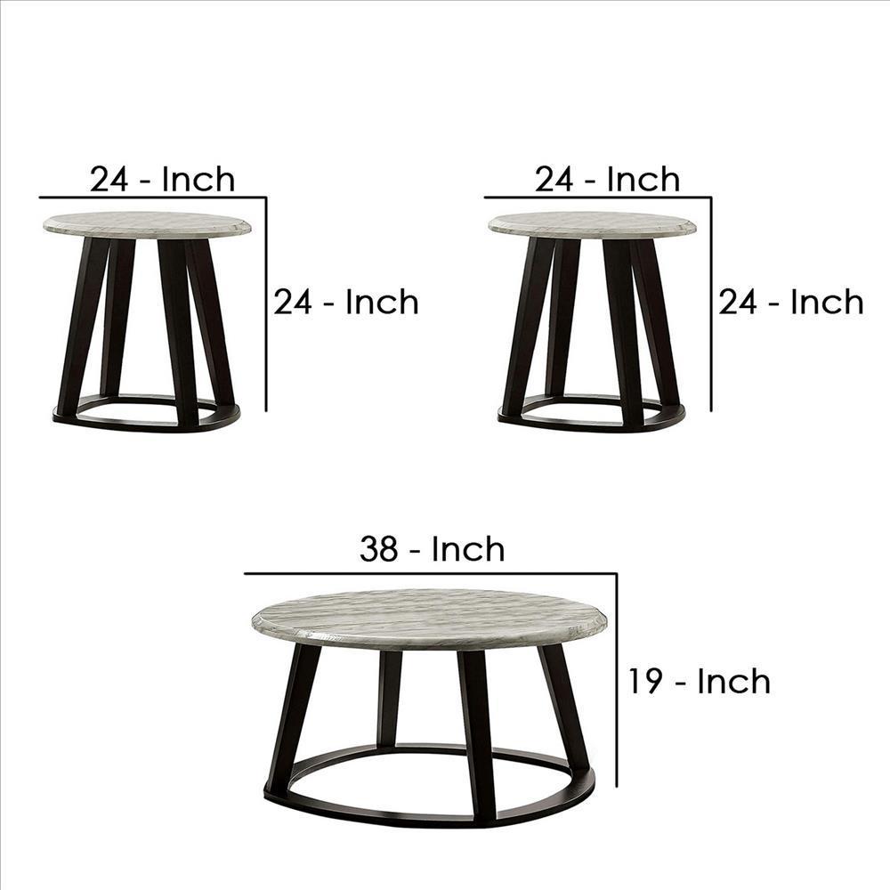 Rejuvenate the aesthetics of your interior with the introduction of this sophisticated and stylish 3 piece Coffee Table set that comes with round faux marble top. Constructed from solid wood frame and accented with veneer to prevent it from warping and splitting, it will be a perfect addition to your place.