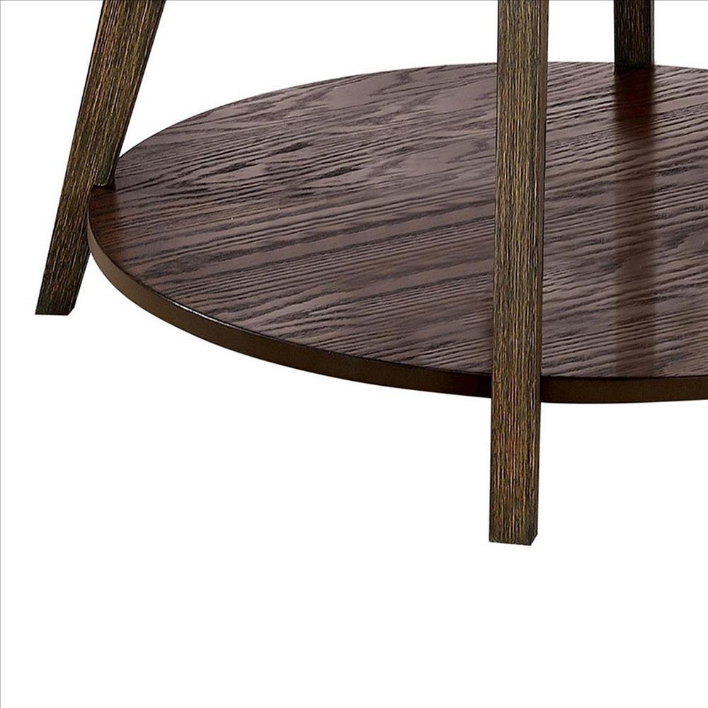 32 Inches Coffee Table With Round Glass Top And Angled Legs, Brown