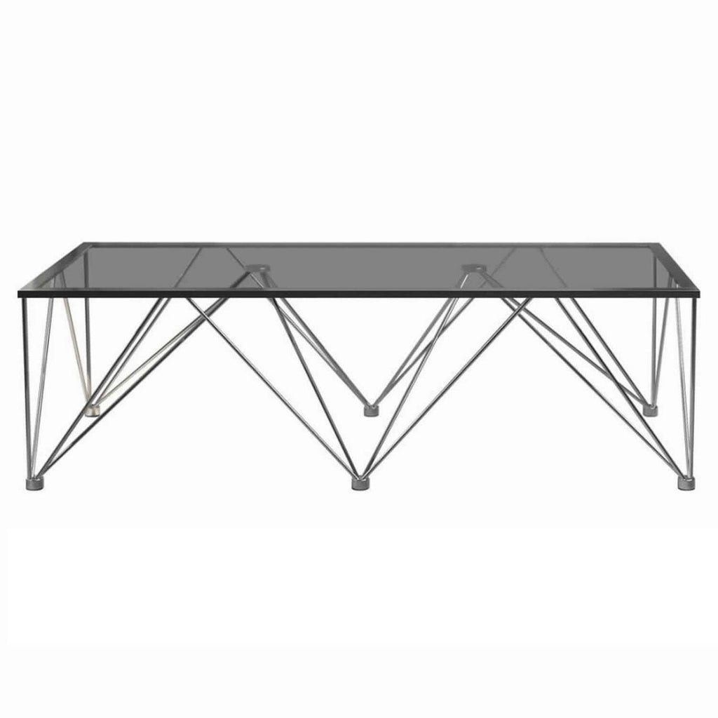 Add a contemporary touch to your modern looking home with the inclusion of this stylish coffee table. Square tempered glass top in enclosed metal frame extending as V shaped sleek legs reinforces sturdiness to the entire piece. Metal caps at the base inhibits abrasion.