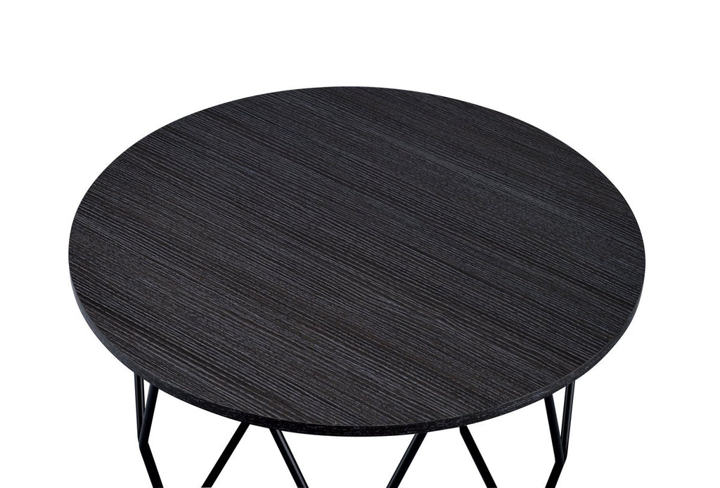 Industrial Round Top Wooden Coffee Table With Geometric Base, Black
