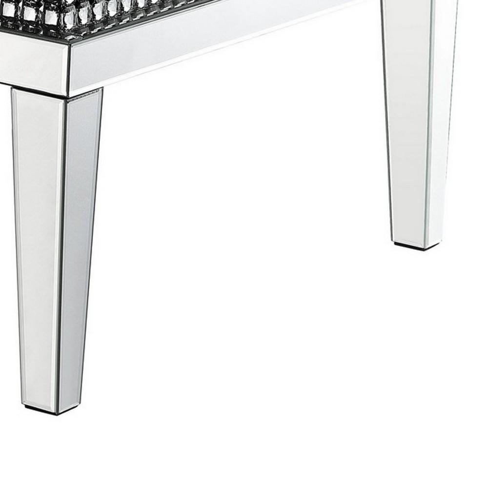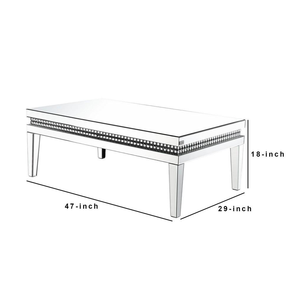 Mirror Inlay Coffee Table With Faux Crystal Accents, Silver