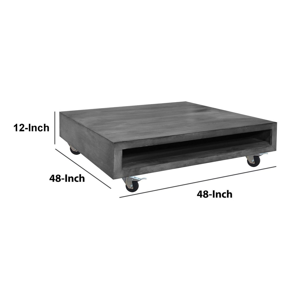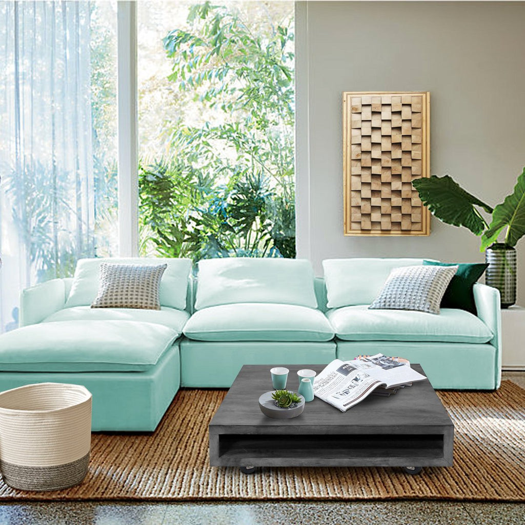 Square Mango Wood Coffee Table With Casters And Open Storage Compartment, Grey