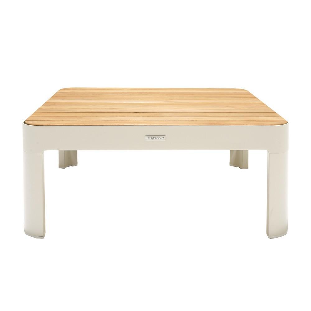 Square Outdoor Coffee Table With Slatted Table Top, Light Gray