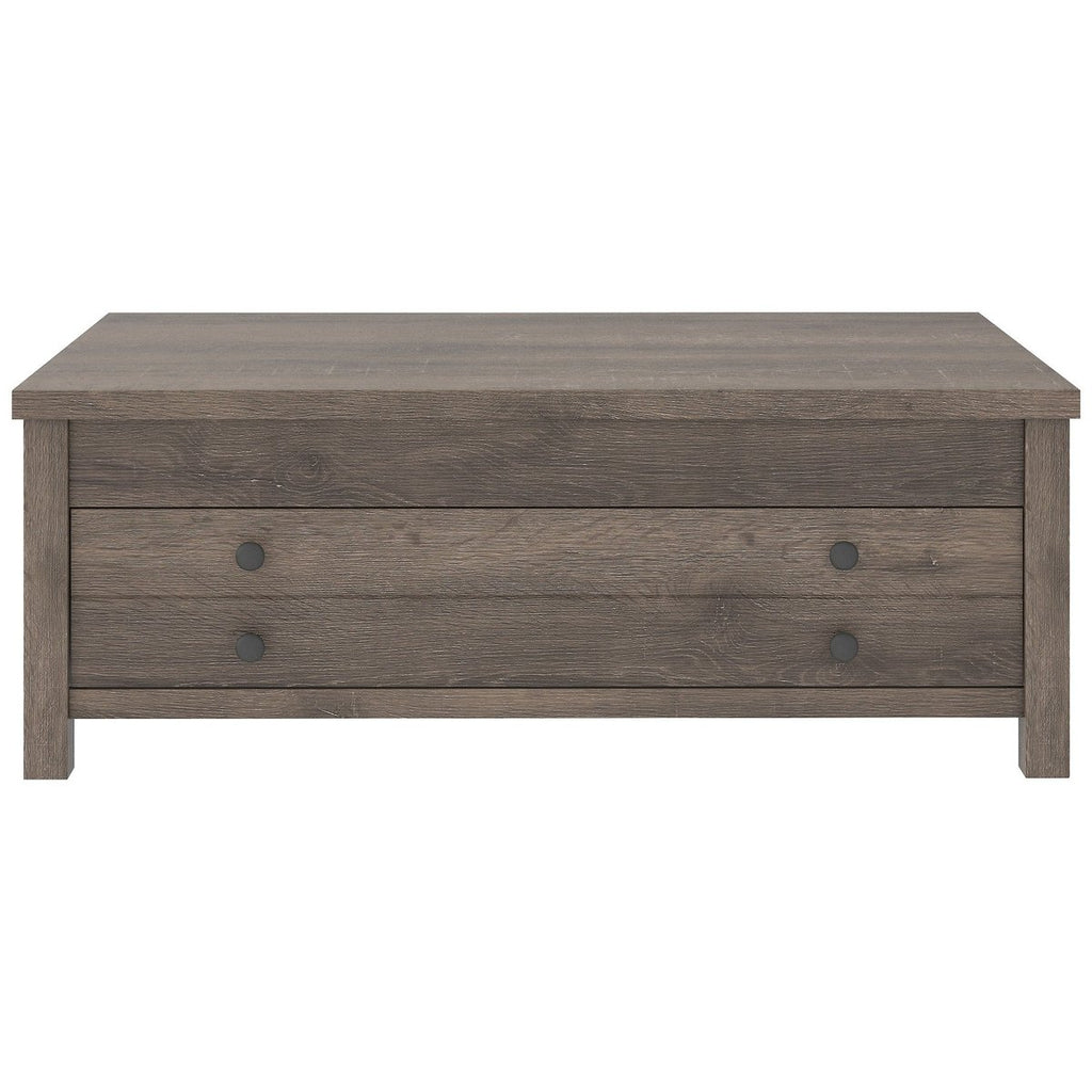 Give your space a sense of rustic flair with this Cocktail Table. It strikes a rectangular silhouette, featuring reclining lift top towards you to place your coffee cup or laptop within reach and open to reveal interior storage space to stash your things in a more organized way. Use it for extra storage in the bedroom or as an entertainment console in a living room.