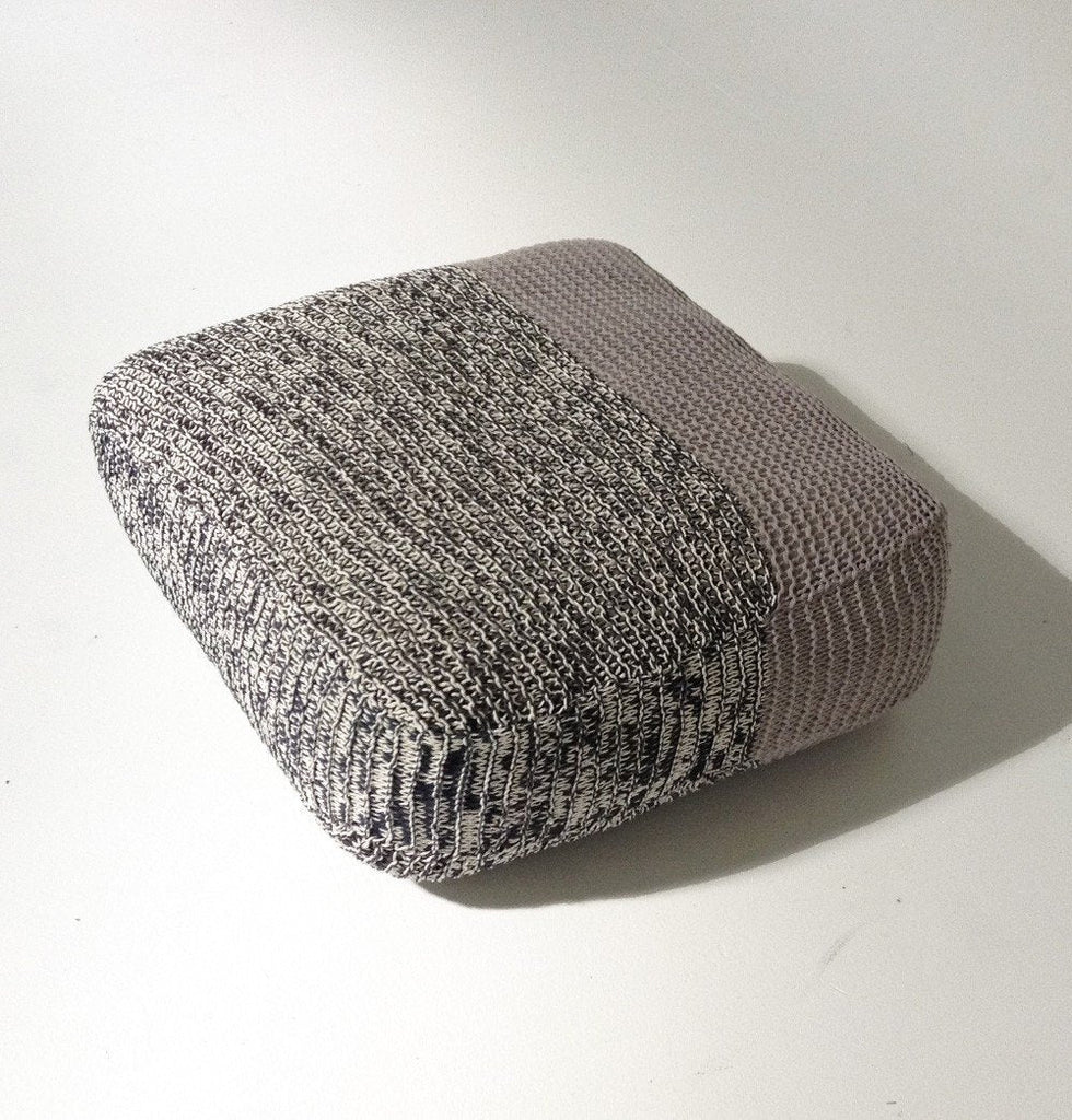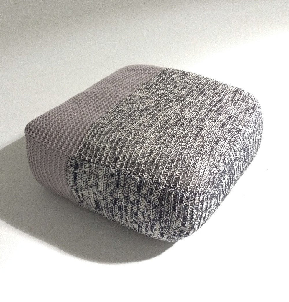 Handmade Knitted Floor Cushion | Mottled Grey & Ashes Of Roses