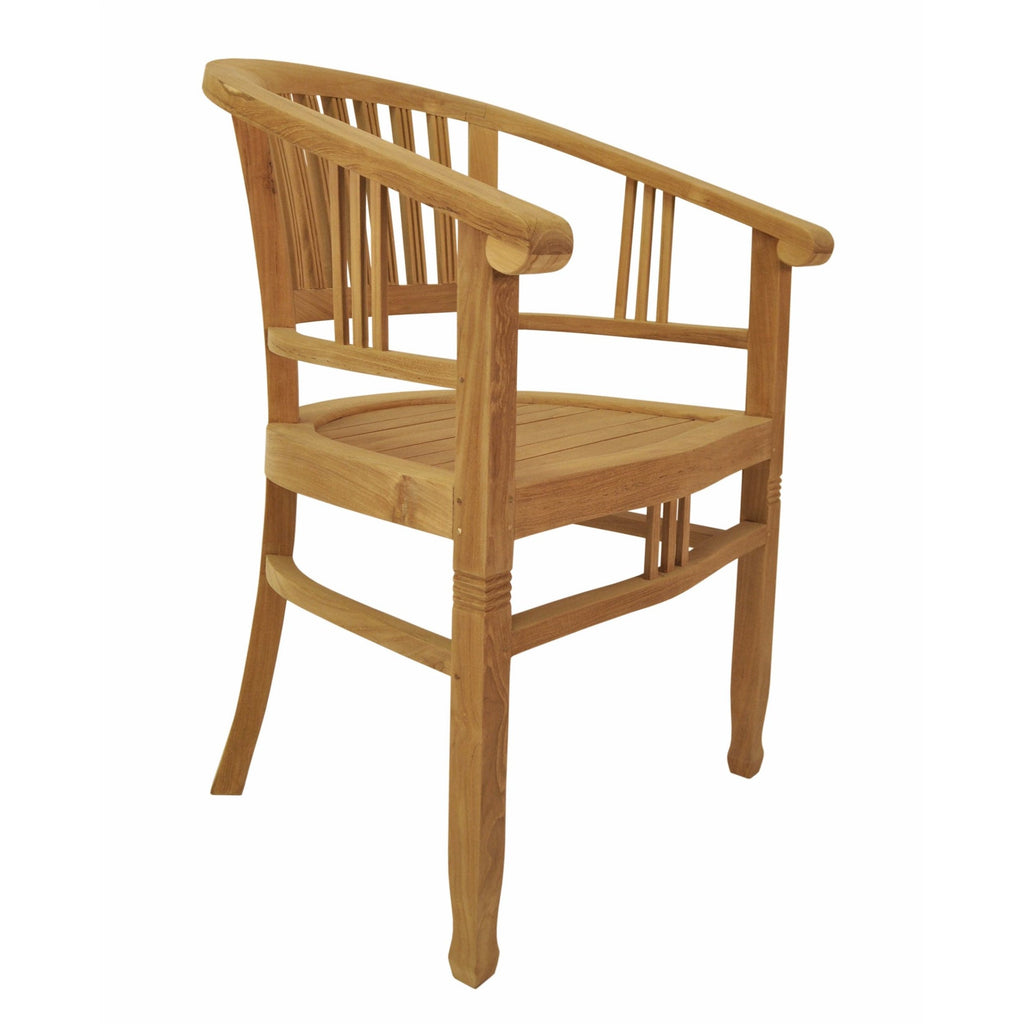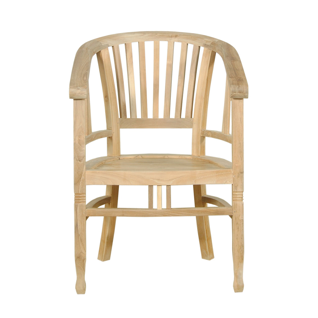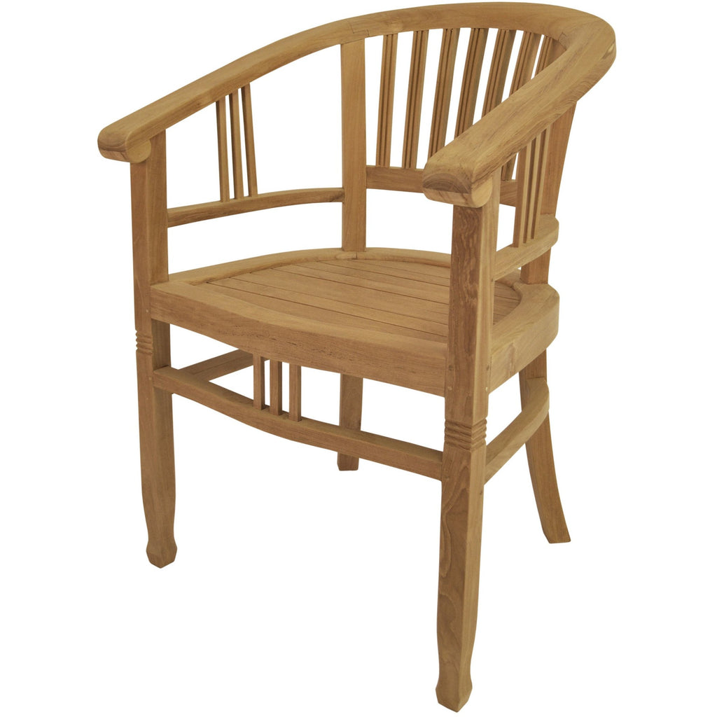 The Captain Dining Armchair is an elegantly crafted piece of furniture that will never go out of style, but quietly blends with any décor or setting. The seat is very sturdy as well as the curved back, allowing greater comfort with each use. Made from kiln-dried Grade-A Teak, it is the perfect material for weathering the outdoors and continued outdoor exposure. Overtime, the chair will weather into a patina grey, or scrub down with soap and water and simple sandpaper to keep in pristine condition. This is a beautiful and functional piece of furniture for your patio or terrace.