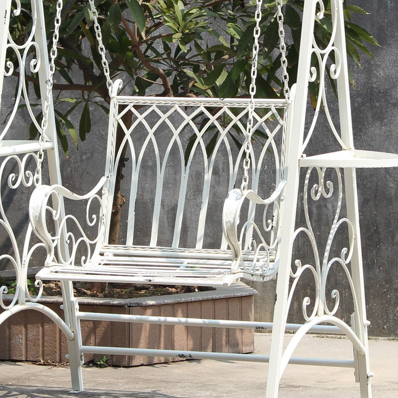 Provide your guests with a comfortable and stylish place to not only sit, but swing with the "New York" Swing Chair. Made of high quality iron, this swing is built to last. Its unique design, flowing architecture, and mesh roof brings an air of style to any atmosphere. - Indoor/Outdoor safe - Year-round use - Seats one(1) person, up to 300lbs - Adjustable chain for comfort - Hand painted distressed antique-style finish - Easy to assemble (instructions and hardware included; no tools necessary) - Available in Bronze and Antique White