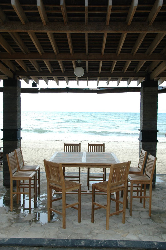 The Windsor Square Bar Table and Avalon Bar Chair is a spacious and ingenious combination perfect for an outdoor high bar set. Designed to seat 8 people comfortably, the AvalonBar Chair features comfortably sculpted seats, angled back support and a sturdy footrest for going up and down. This teak bar set also includes the 59"" Windsor Square Bar Table. Spaciously large, bulky and tall, it stands at 42"" in height with an umbrella hole in the center with brass plug when not in use. Made of premium grade unfinished teak, its sanded smooth for an authentic natural feel. Add All-Weather Sunbrella Fabrics and Cushions for added comfort. Enjoy the rest of the evening and night accompanied with family and friends over your favorite brew or meal, place this bar set in your backyard and it will be the center of conversation.