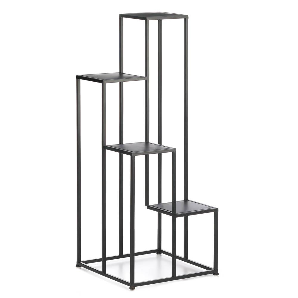 Mix modern and natural decor elements with this four-tier plant stand. The plant stand features a minimalist geometric design with four square platforms made from solid iron in a matte black finish. With enough space to support four large house plants, this decorative plant stand is guaranteed to draw attention in any space.