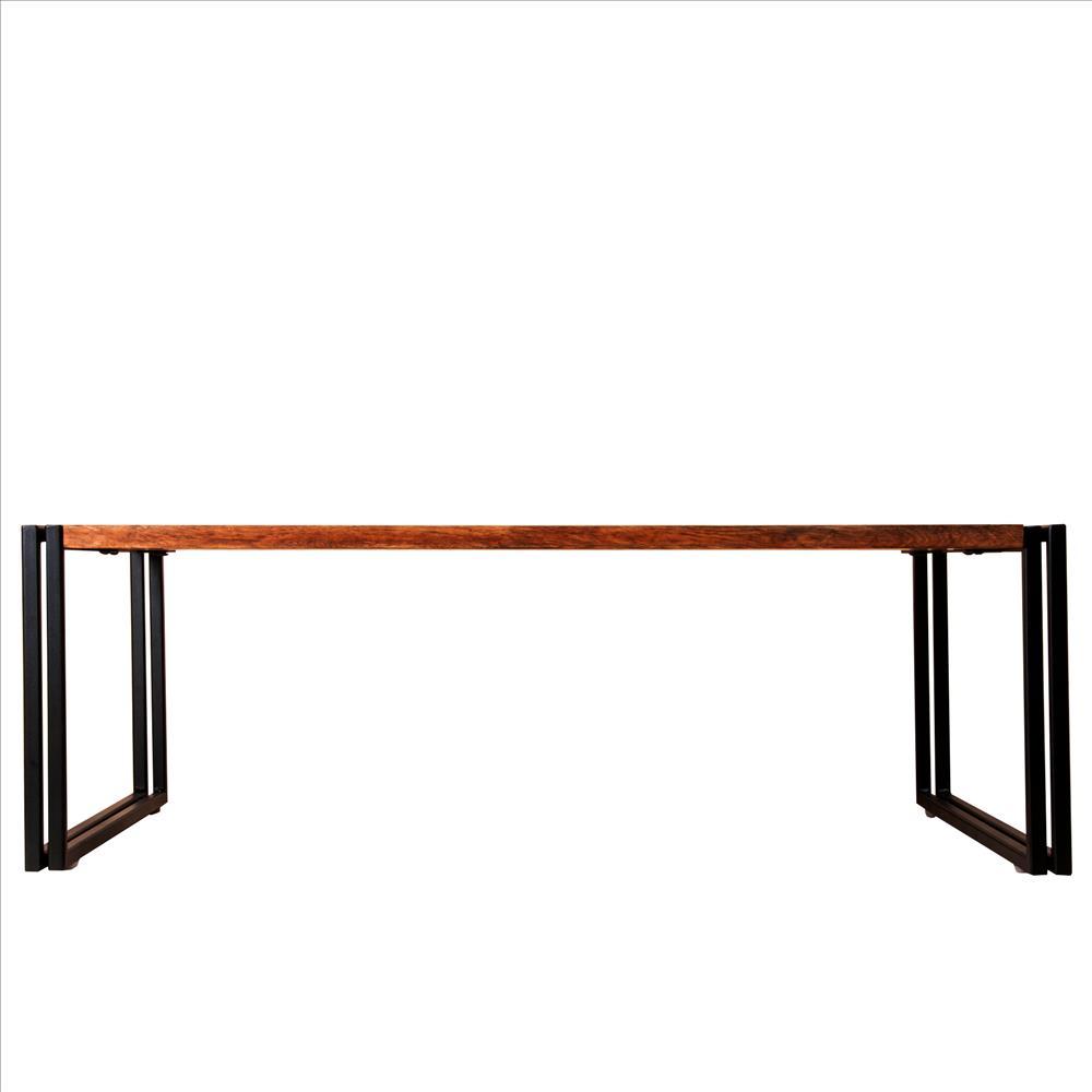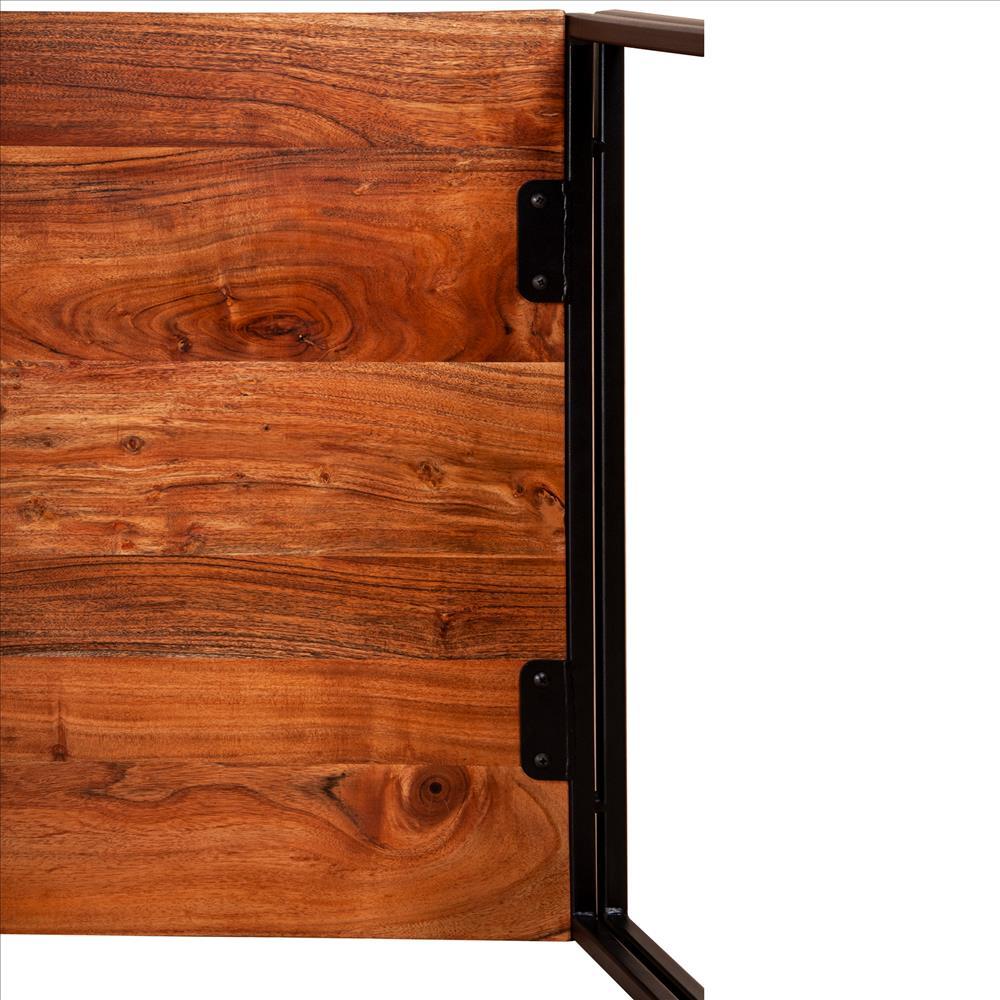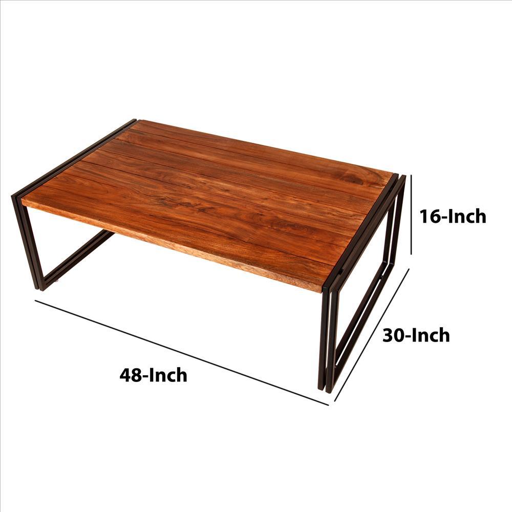 Exuding an industrial charm, this Coffee Table is sure to enhance the aesthetics of your living space with its clean lined design. Incorporated with aesthetically visible grain details, the Coffee Table is supported sturdily on sled base. Constructed sturdily from the combination of acacia wood and metal frame for prolonged durability, the spacious wide top is sure to render hassle free services. The concoction of the brown and striking black finish compliments the overall structure, adding an enchanting essence. Though inspired by industrial style, this Coffee Table can blend with a variety of decor settings without compromising the integrity of the interior.