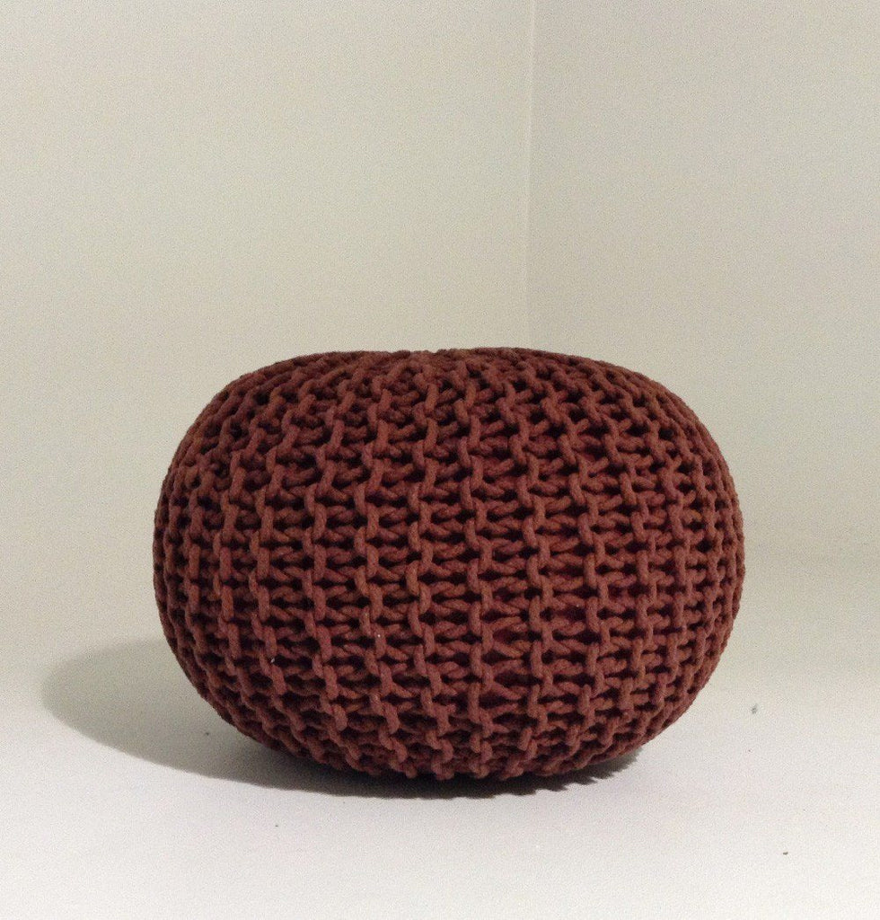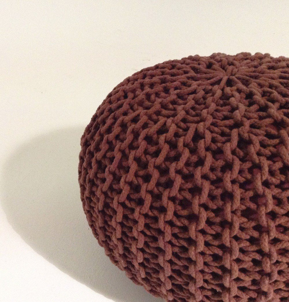 Handmade Round Knitted Pouf | Marsala | 50x35cm